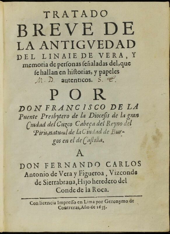 Tratado breue de la antiguedad del linaie de Vera, y memoria de personas señaladas del que se hallan en historias y papeles autenticos