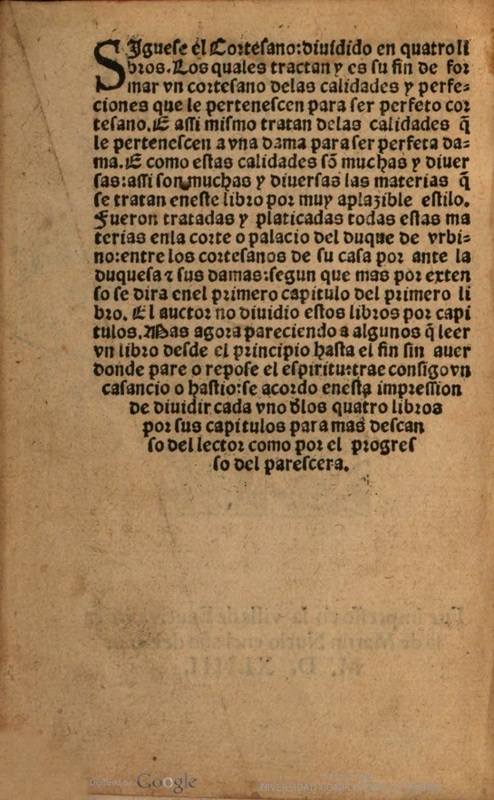 Libro llamado el Cortesano