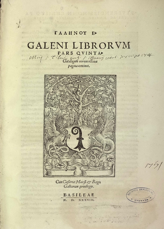 Galēnou E. Galeni librorum pars quinta catalogum eorum octaua pagina continet