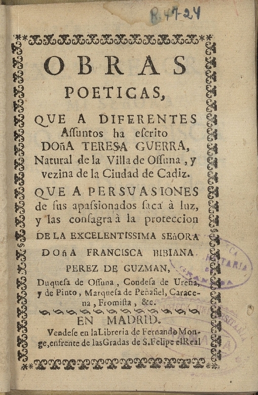Obras poeticas que a diferentes assuntos ha escrito Doña Teresa Guerra...