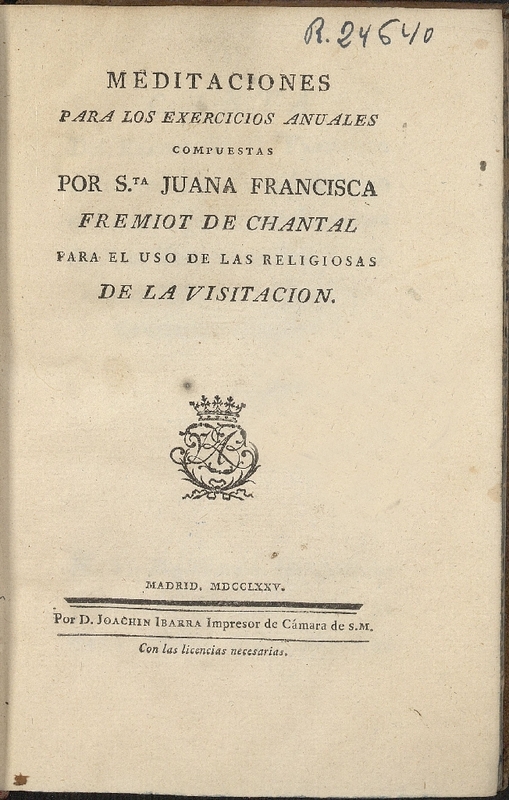 Vida de la venerable madre sor Juana Francisca Fremiot de Chantal, fundadora de la Orden de la Visitación de Santa María