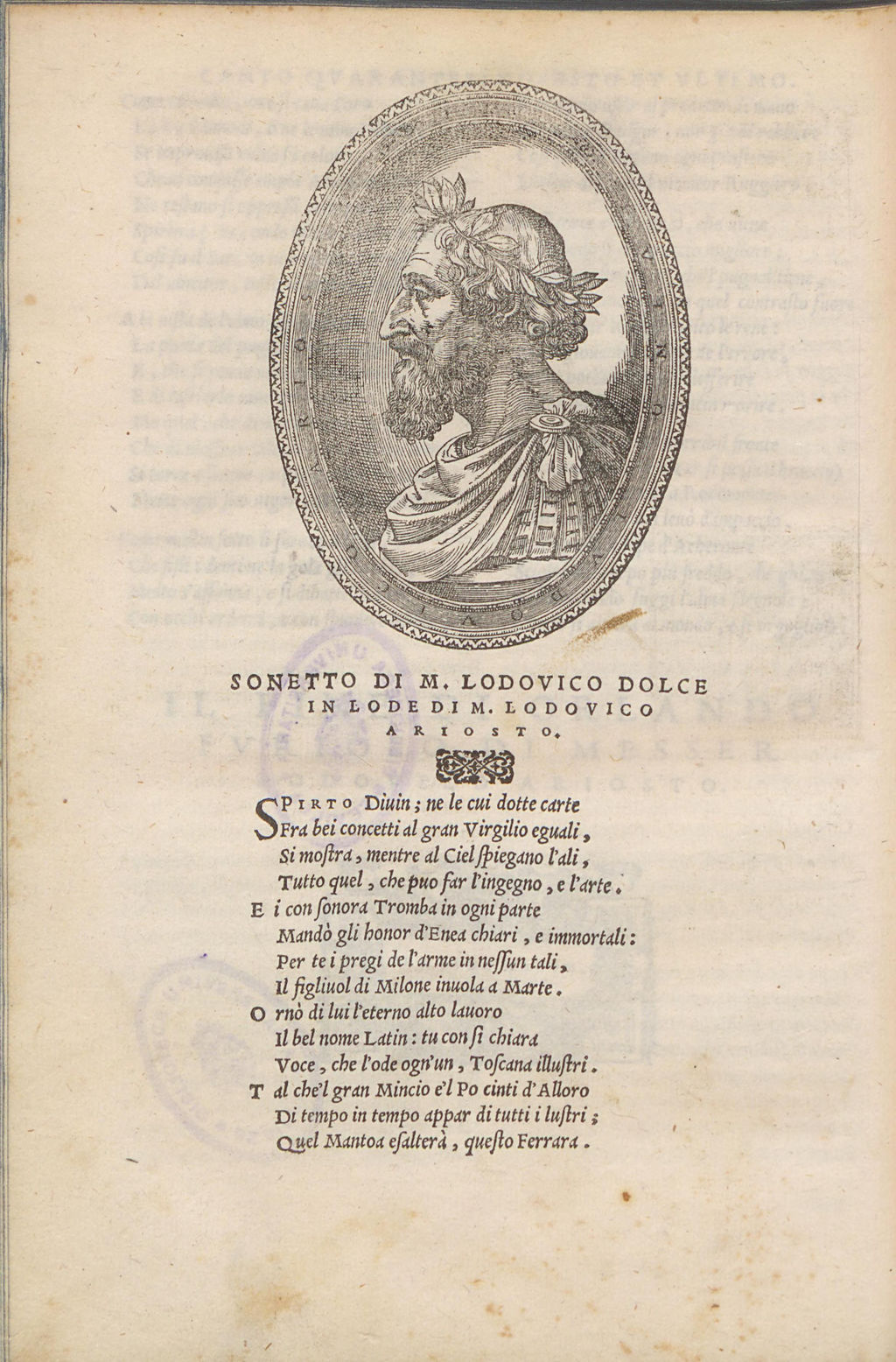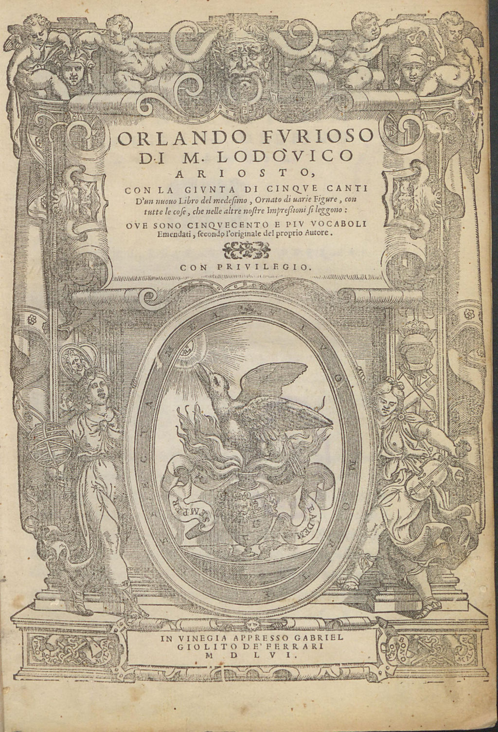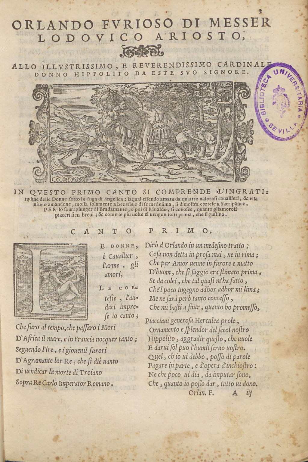 El Orlando furioso de Ludovico Ariosto, impreso en Venecia en 1556 por Gabriele Giolito de Ferrari, es una de las obras maestras de la literatura europea del Renacimiento y uno de los poemas épicos más influyentes de la Edad Moderna. Publicado por primera vez en 1516 y revisado por su autor hasta la edición definitiva de 1532, el poema alcanzó una difusión extraordinaria gracias a impresores venecianos como Giolito, que supieron convertirlo en un auténtico fenómeno editorial.