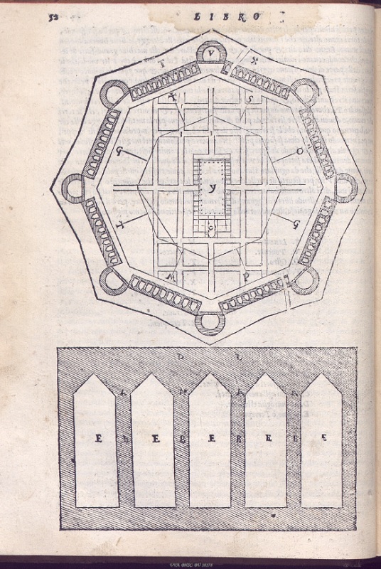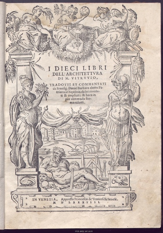 En las diversas bibliotecas nobiliarias que terminan convergiendo en la Casa ducal de Osuna, hay un continuado interés por los libros sobre el arte y la arquitectura, tanto los diversos estudios e inventarios sobre la Antigüedad clásica y sus ruinas, como en los tratados prácticos de arquitectura y fortificaciones militares. Es por esto, que no podía faltar este tratado fundamental que sienta las bases de la arquitectura occidental. Destacamos esta edición impresa en 1584, en Venecia por Francesco de Franceschi, con la traducción de Daniel Barbaro, y los diseños, entre otros, de Andrea Palladio.