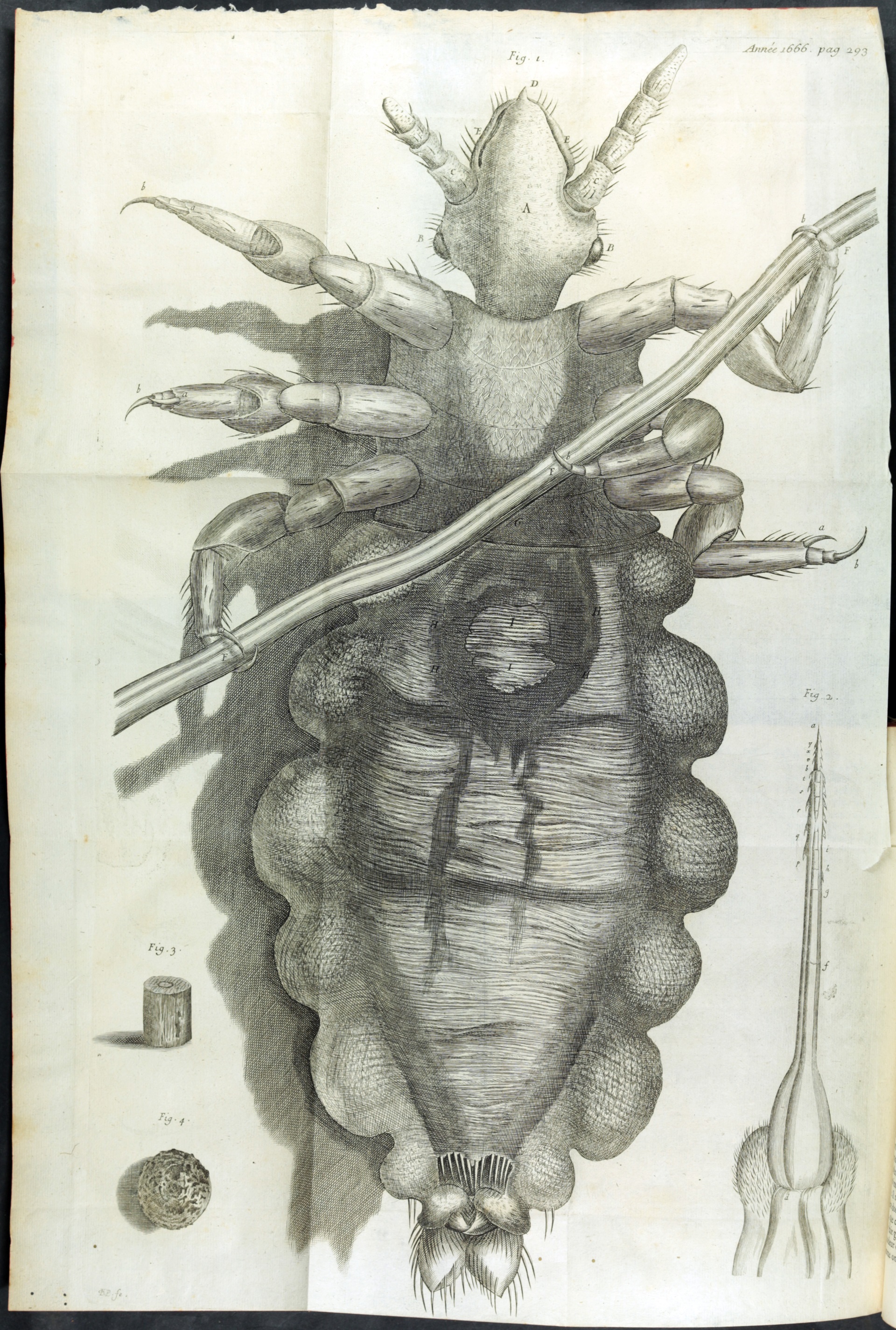 La fortuna del Journal des savants como nueva forma editorial también se debe a las facilidades ofrecidas para la recuperación de la información, con la aportación de índices para cada uno de los años, índices generales, y bibliografías. Fueron asimismo importantes los grabados, como el que aquí se exhibe de un piojo observado en un microscopio, incluido en el número correspondiente al año 1666.