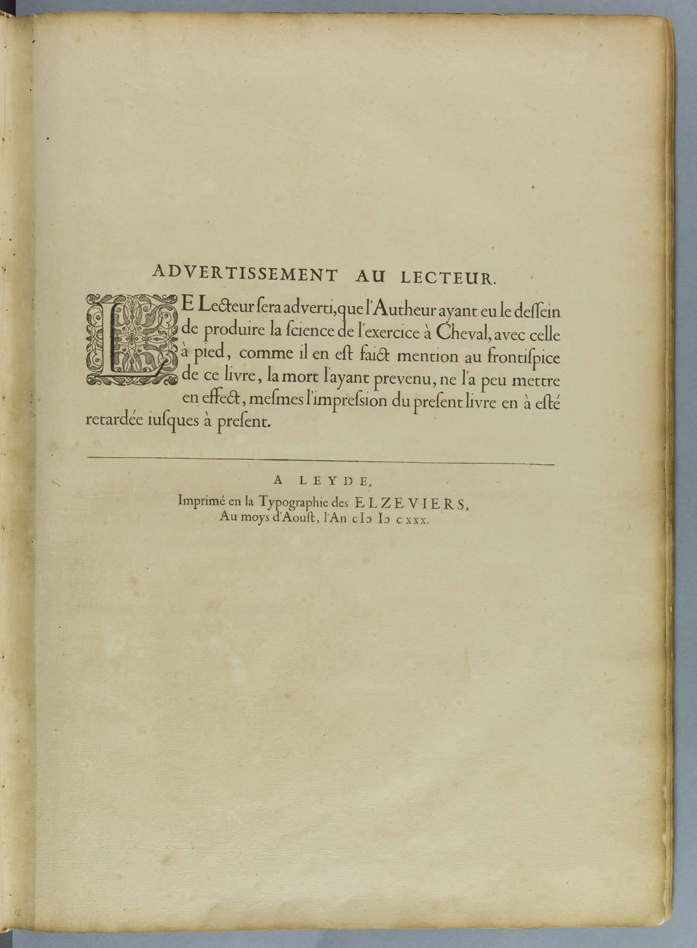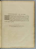 El ejemplar del CRAI Fondo Antiguo de la Universitat de Barcelona pertenece al reducido número de copias que incluye tres hojas preliminares adicionales, entre ellas un Advertissement au lecteur donde se revela la identidad de los impresores. También lo distingue la ausencia de divisas en las cartelas superior e inferior del retrato del autor.