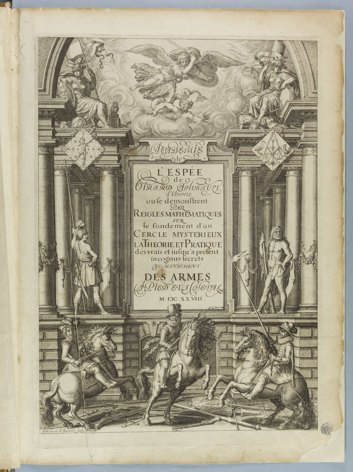 Gerard Thibault (-1627), originario de Amberes, se estableció en 1605 como mercader en Sanlúcar de Barrameda, donde se interesó por la esgrima, adoptando y elaborando hasta el límite el método del afamado Luis Pacheco de Narváez (ca. 1570-1640), maestro mayor de esgrima de Felipe IV. A partir de una competición celebrada en Rotterdam en 1611, la fama de Thibault crece, y se multiplican sus adeptos, a la vez que obtiene un éxito clamoroso en distintas cortes europeas.