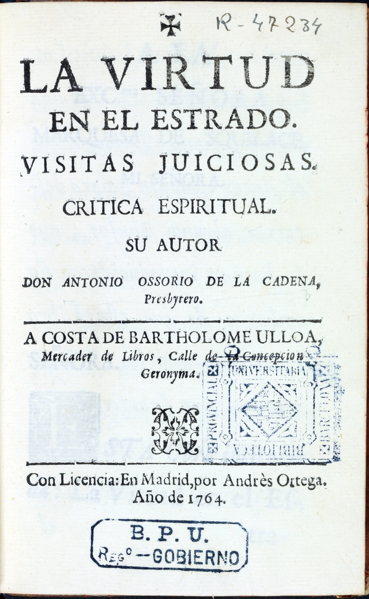 Las ocho ediciones conocidas de la obra que presentamos, escrita por el jesuita Juan de la Paz (1703-1773 o 1779) bajo el pseudónimo de Antonio Osorio de la Cadena, revelan el éxito que esta cosechó.