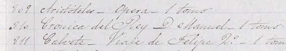 Consta en la Relación de los libros que procedentes de la Biblioteca del Exmo Sr Duque de Osuna, dona el Estado a la Universidad de Santiago el 10 de julio de 1891, con el número 810.