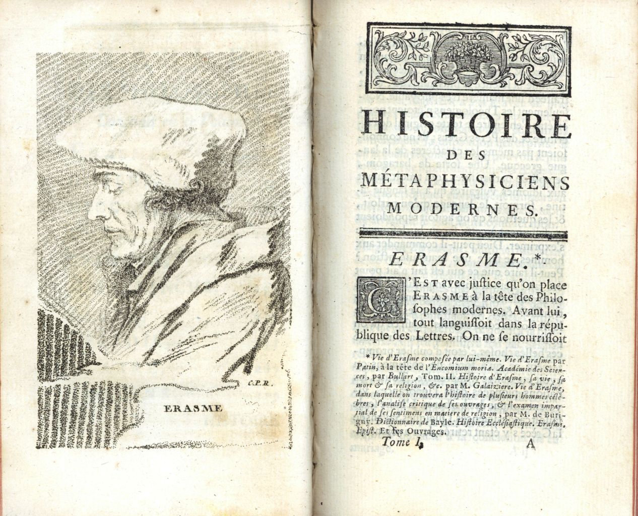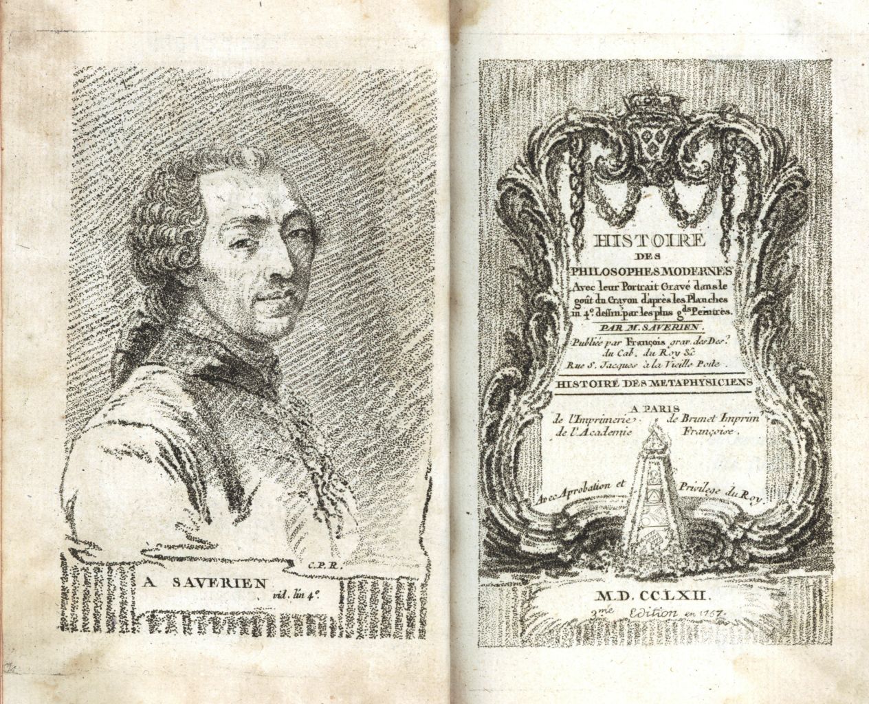 La obra está dedicada a ofrecer una semblanza de los más grandes «filósofos», entendido este término en un sentido amplio, pues por sus ocho tomos pasan metafísicos, moralistas y legisladores, matemáticos, físicos, químicos, astrónomos y naturalistas. En realidad, se trataba de un proyecto del ilustrador Jean Charles François (1717-1769), que empezó imprimiendo en tamaño cuarto, pero, dadas las escasas ventas, decidió pasar a un formato menor. Como se indica en el título, la edición está enriquecida con los retratos de los biografiados, hechos «a lápiz», algo que ofrece una textura muy diferente a la que encontramos en las calcografías habituales de la época. Se trata de una técnica novedosa, como se subraya al final del primer tomo, en la «Lettre de M. François , graveur, a M. Saverien, sur l’utilité du dessein et sur la gravure dans le goût du crayón». Sin embargo, a partir del tomo VI, las estampas son calcográficas y la mayoría ya no son obra de François. Entre los retratados encontramos a Erasmo, Hobbes, Aldrovandi, Copérnico, Galileo, etc.