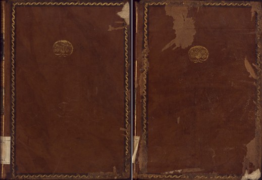 Es una encuadernación neoclásica en tafilete marrón con rueda dorada enmarcando ambas cubiertas, guardas marmoleadas, tipo shell.
