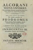Alcorani textus universus ex corretioribus arabum exemplaribus summa fide, atque pulcherrimis characteribus descriptus eademque fide, ac pari diligentia ex arabico idiomate in latinum translatus...