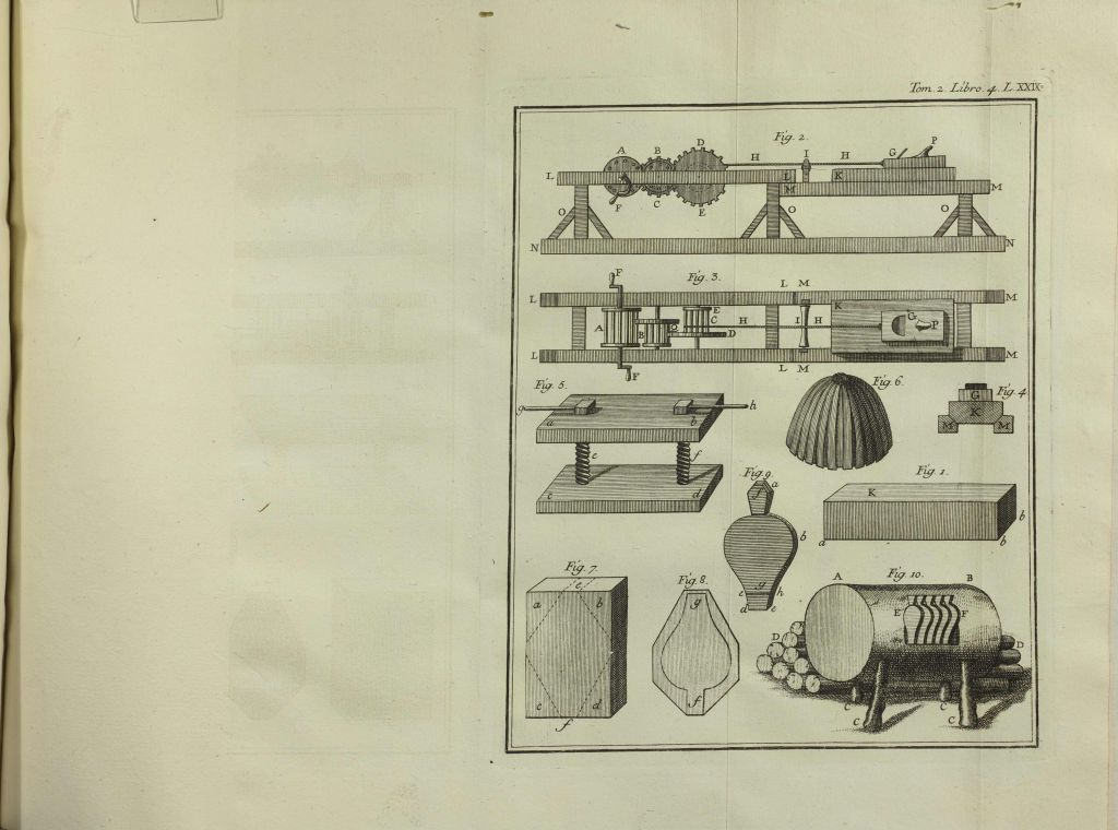 Esta edición, impresa en Madrid en 1773–1774, es obra de Joaquín Ibarra, uno de los grandes impresores del siglo XVIII, reconocido por la calidad tipográfica y técnica de sus obras. Incluye bastantes hojas plegadas de grabados calcográficos con representaciones de herramientas y técnicas. La publicación fue financiada por la Real Compañía de Impresores y Libreros del Reino.
