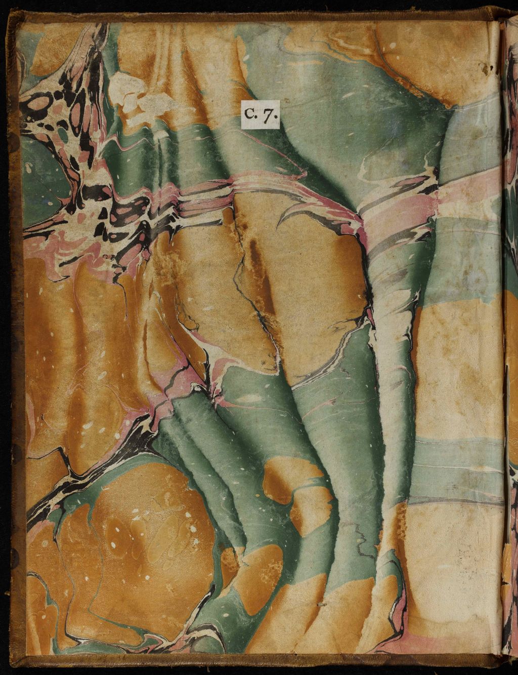 En la cubierta anterior aparece el supralibros de María Josefa Alonso Pimentel y Borja, duquesa de Osuna, XII duquesa de Benavente, con el monograma “PIMENTEL” y en la contracubierta anterior, la etiqueta impresa con el código alfanumérico: “C.7.”.