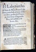 Todas las obras del famosissimo poeta Iuan de Mena con la glosa del comendador Fernan Nuñez sobre las trezientas