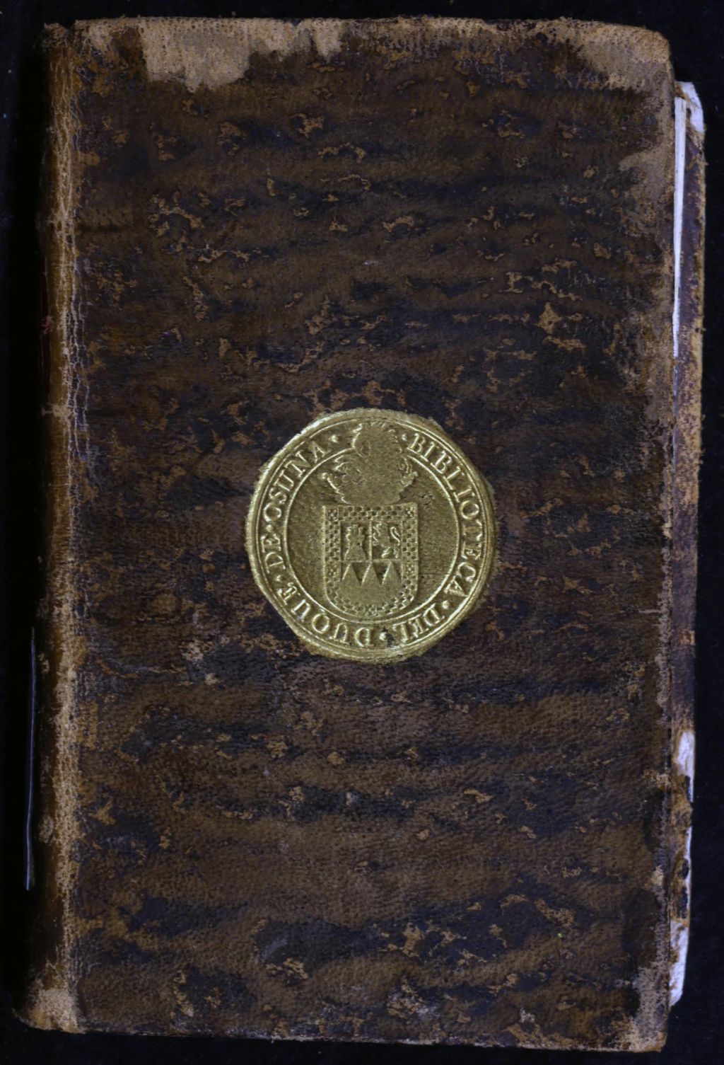 El ejemplar conservado en la Universitat de València presenta encuadernación en pasta, lomo con adornos dorados y tejuelo con título dorado, guardas marmoleadas tipo plegado español y cortes amarillos. Contiene diversas marcas de propiedad: el supralibros de Osuna en la cubierta, signatura topográfica en tinta, y el exlibris manuscrito Doctoris Perezii Bayerii, que indica su pertenencia a Francisco Pérez Bayer. Este insigne filólogo, jurista y numismático valenciano donó su biblioteca a la Universitat de València, lo que supuso el núcleo fundacional de la actual biblioteca.