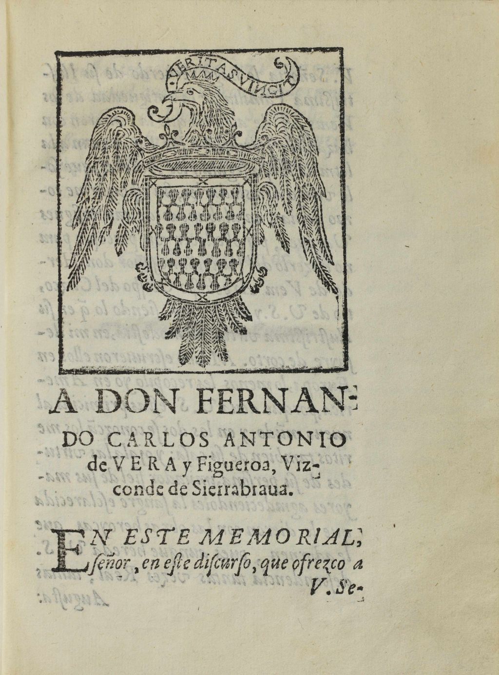 En el Tratado breue de la antigüedad del linaie de Vera, el autor ensalza el linaje Vera, cuyo origen sitúa en la antigüedad, remontándose incluso a Roma y vinculándolo en España a figuras como Trajano, Adriano o el Cid. La obra está dedicada a don Fernando Carlos Antonio de Vera y Figueroa, Vizconde de Sierrabrava. Contiene un escudo xilográfico con las armas de la familia representadas por un águila con el lema Veritas vincit.