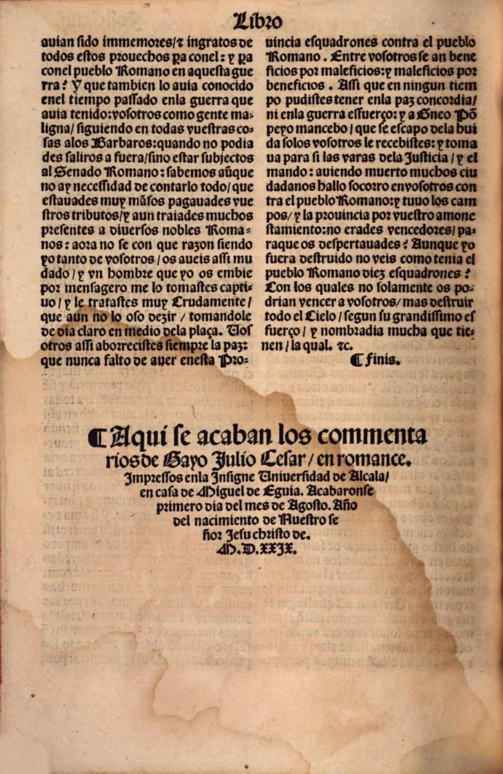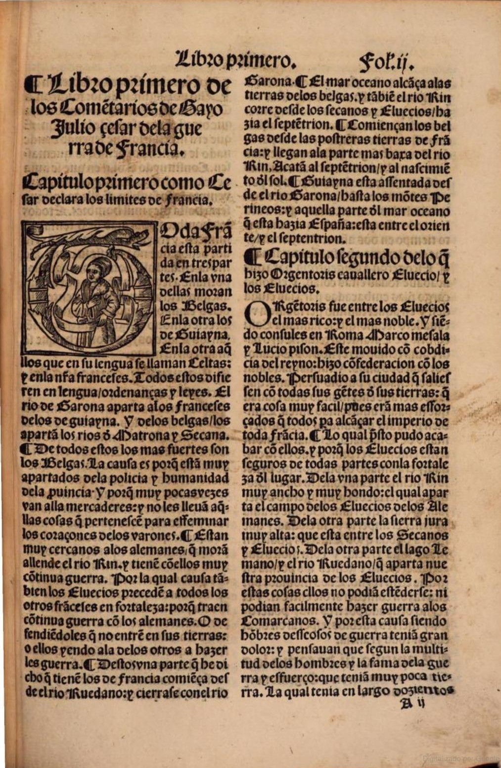 Este dictado de Julio Cesar, con el relato de sus famosas conquistas, es una de las obras en prosa latina más influyentes de todos los tiempos. Y lo es no solo por ser modelo de muchos de los tratados militares posteriores, que procuraron replicar el exitoso modelo literario del general romano, sino también como texto de uso escolar para los estudiantes de latín, ya desde la Edad Media. Este gran valor histórico hizo que conociera traducciones tempranas al castellano, con el propósito de acercar la obra a círculos menos eruditos. Entre estas, podemos destacar la de Diego López de Toledo, que se imprimió inicialmente en Toledo, en 1498, en las prensas de Hagenbach.