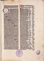 El ejemplar complutense, con bellísimas iniciales y calderones iluminados a mano en tinta azul y roja, también presenta, como es habitual en la colección Osuna, el supralibros en oro estampado en la cubierta anterior, con el escudo familiar y la inscripción "BIBLIOTECA DEL DUQUE DE OSUNA". La encuadernación, de pasta, presenta hierros dorados en el lomo.