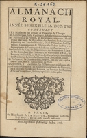 El Almanach Royal es una publicación oficial de referencia que, desde comienzos del siglo XVIII, reunía anualmente listas nominales de los miembros de la familia real francesa y de los principales cuerpos del Estado bajo el Antiguo Régimen. Su edición corre a cargo del impresor real parisino Le Breton, responsable de fijar y poner en circulación esta herramienta básica para cortesanos, administradores, financieros y todos aquellos interesados en conocer la organización política, administrativa y eclesiástica del reino.